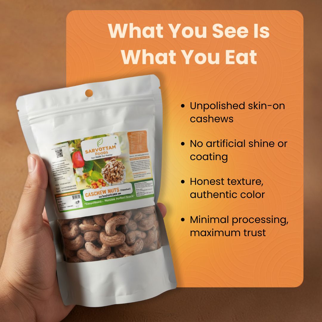 Premium unpolished cashews sourced directly from our farms, graded W180 for consistent quality and size. These raw, natural cashews retain their authentic flavor profile and nutritional integrity without processing or polishing. Ideal for roasting, cooking, or enjoying as a wholesome snack. Each kernel delivers the rich, buttery taste cashew enthusiasts appreciate. Perfect for culinary applications where pure, unadulterated cashew quality matters.